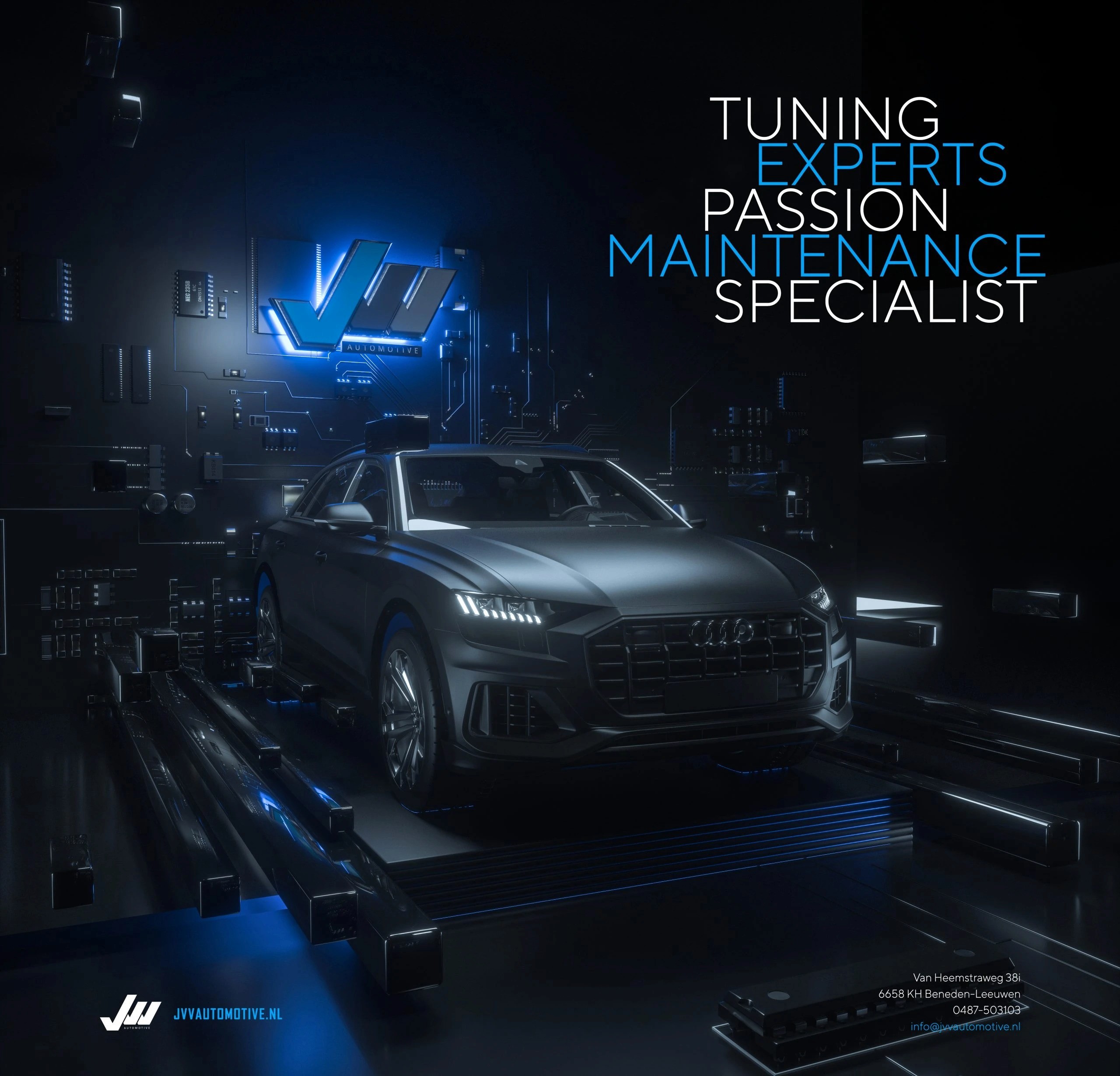 JVV Motorsport is ontstaan vanuit JVV Automotive, een gevestigde naam in de regio op het gebied van onderhoud, reparatie en betrouwbaarheid voor alle automerken. Waar JVV Automotive zich richt op service, onderhoud en dagelijkse mobiliteit, is JVV Motorsport de tak die zich volledig toelegt op performance en beleving.